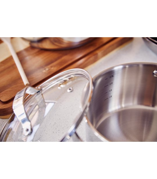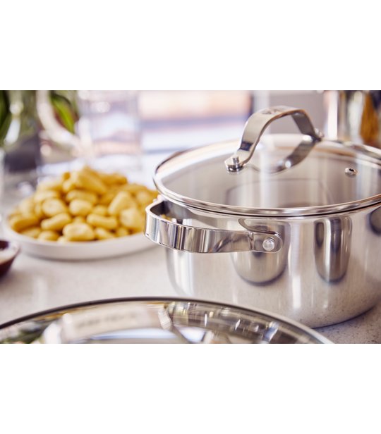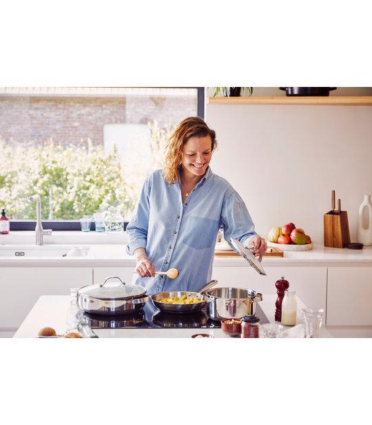 Cette collection est fabriquée avec de l’acier inoxydable recyclé. Pour la production de Cicla, nous utilisons de l’acier inoxydable certifié RCS traité. L’acier inoxydable recyclé permet non seulement de préserver les ressources de la planète, mais c’est aussi le matériau le plus durable pour les ustensiles de cuisine. L’acier inoxydable est réputé pour être très résistant à une utilisation intensive, au nettoyage et à la chaleur élevée. Le fait que nous utilisions maintenant des matériaux recyclés ne compromet pas les performances de ces matériaux durables.