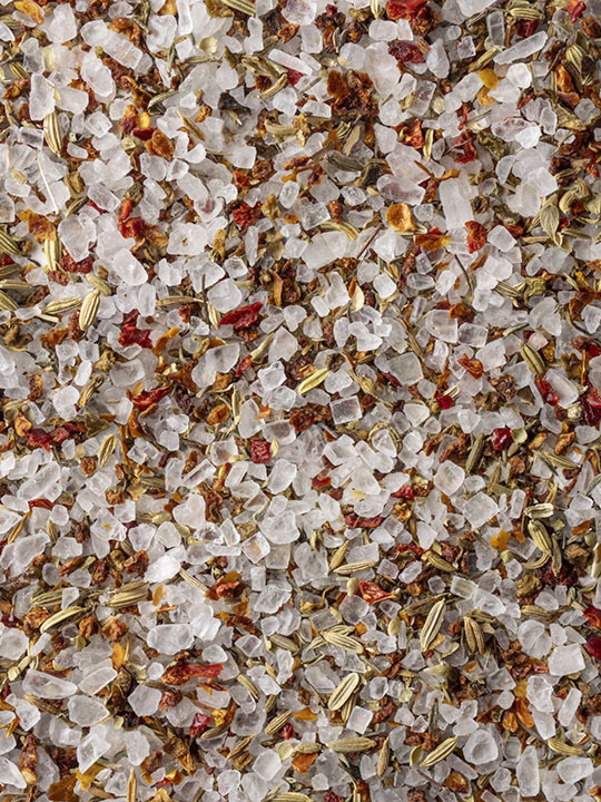 Son bouquet d’herbes aromatiques, la fraicheur du fenouil et la profondeur du cumin associé aux notes chaleureuses des tomates et poivrons séchés, lui donne tout son caractère. Varier la taille de mouture, permet de jouer sur les textures et d’apprécier pleinement ce mélange.Ce mélange aromatique généreux associe sel gemme, épices, herbes et légumes d’été séchés pour une composition riche en saveurs. L’équilibre entre la fraîcheur du fenouil, la profondeur du cumin et les notes chaleureuses des tomates et poivrons séchés lui donne son caractère. Il sublime avec gourmandise les viandes rouges, légumes, légumineuses et salades, apportant une touche ensoleillée à chaque plat. Pensez à faire varier la taille de mouture, pour profiter pleinement de ses arômes.