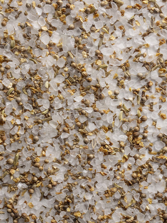 Mélange aromatique à base de sel gemme, d’épices et d’agrumes.