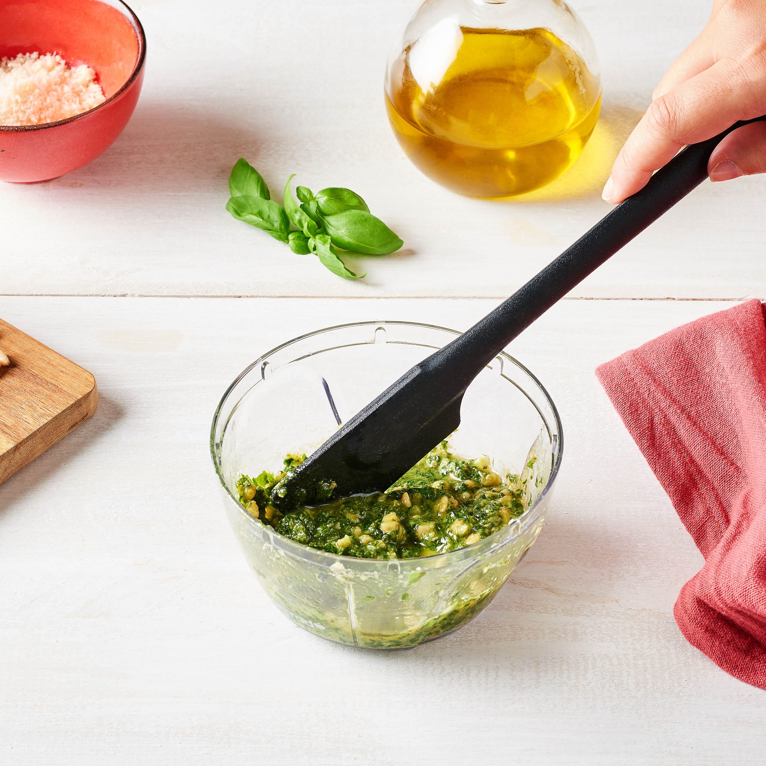 La demi-spatule tout silicone est idéale pour racler les récipients sans les rayer et napper les gâteaux.