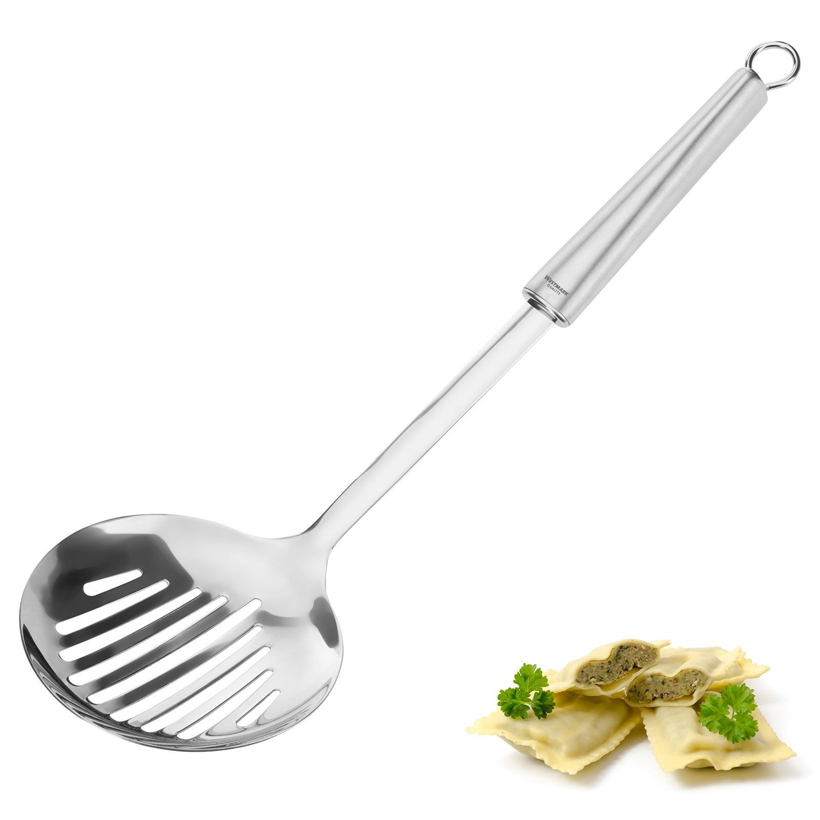 • Avec une partie métallique fendue pour écrémer, égoutter, sortir et servir des aliments de la casserole ou de la marmite • avec un œillet pratique pour rangement suspendu