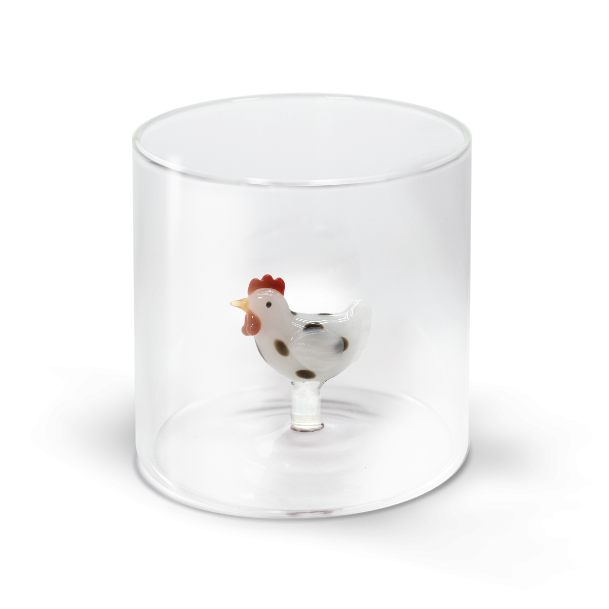 Gobelet en verre borosilicate avec sujet en verre coloré à l’intérieur. Chaque sujet est fabriqué à la main en verre soufflé, ce qui fait que chaque pièce est unique.