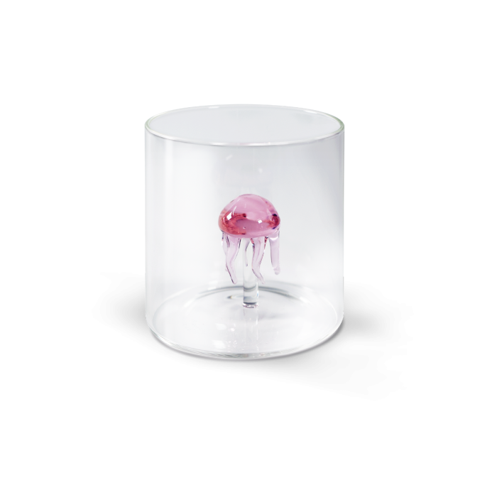 Gobelet en verre borosilicate avec sujet en verre coloré à l’intérieur. Chaque sujet est fabriqué à la main en verre soufflé, ce qui fait que chaque pièce est unique.