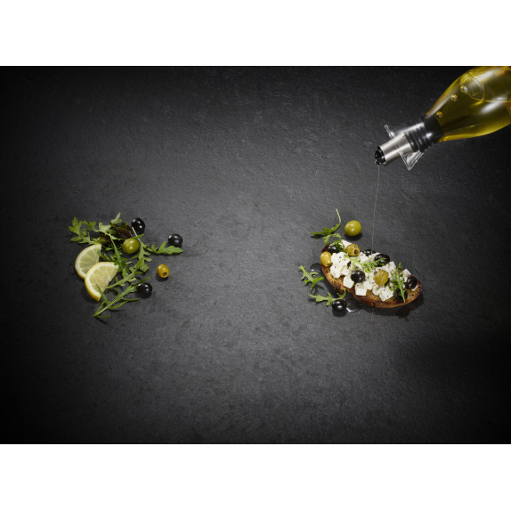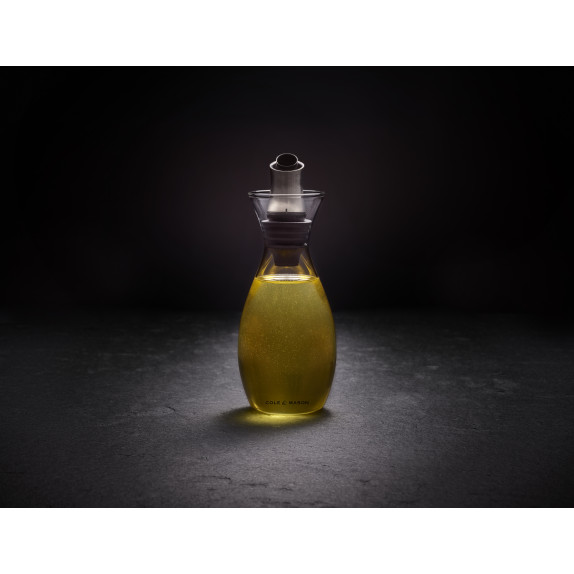 Conçue pour être utilisée pendant que vous cuisinez ou à table, cette carafe est idéale pour sublimer vos plats et permet de verser son contenu en un filet régulier. Son système unique de retour de l’huile permet d’éviter les gouttes et son filtre antiblocage vous permet de créer des huiles et vinaigres infusés sans qu’aucune particule ne reste coincée.