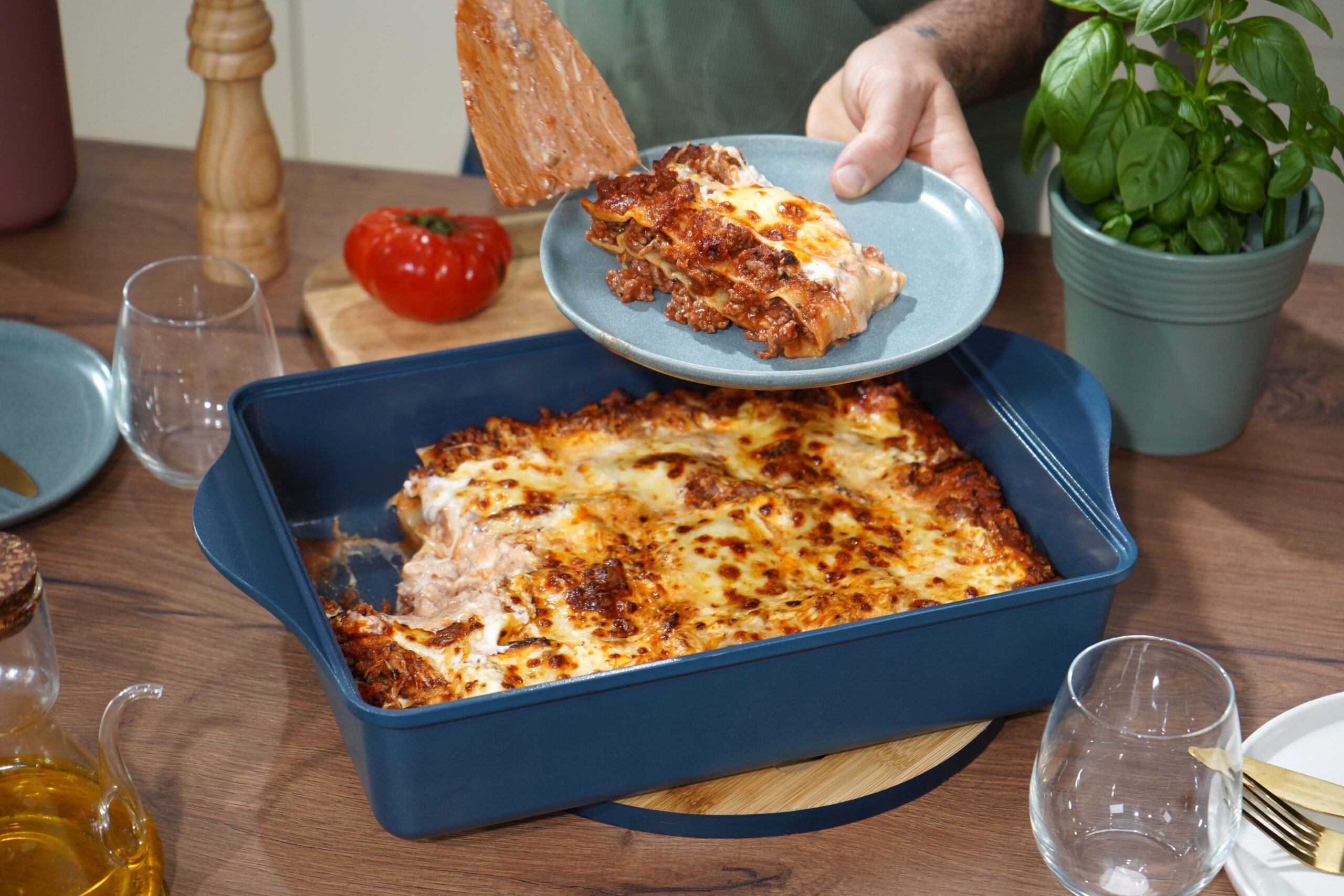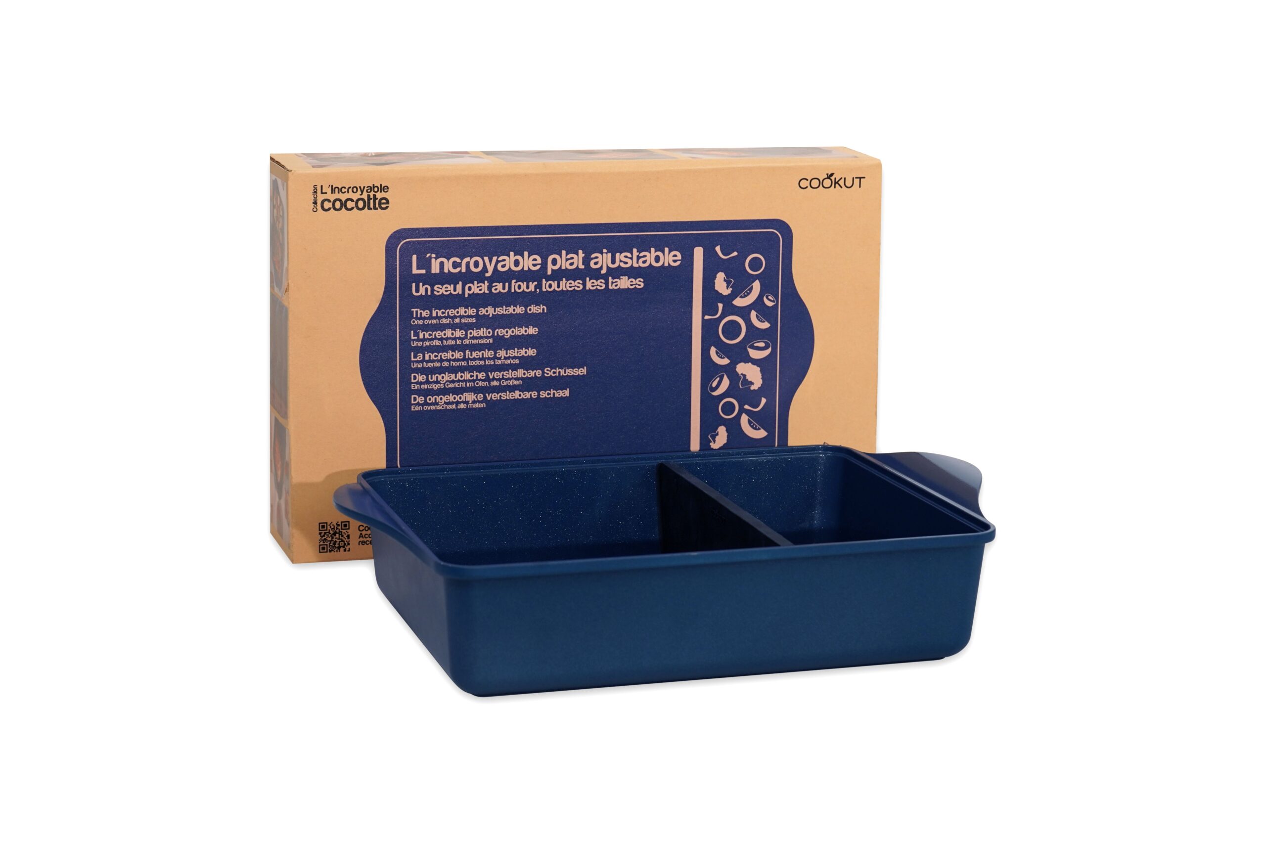 Ce plat unique remplace tous les autres plats : grâce à son séparateur breveté, ajustez facilement la taille de votre plat en fonction de vos envies et du nombre de convives.