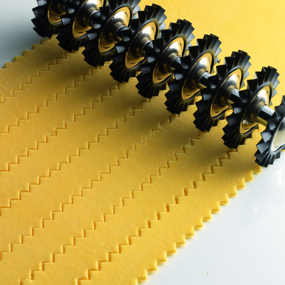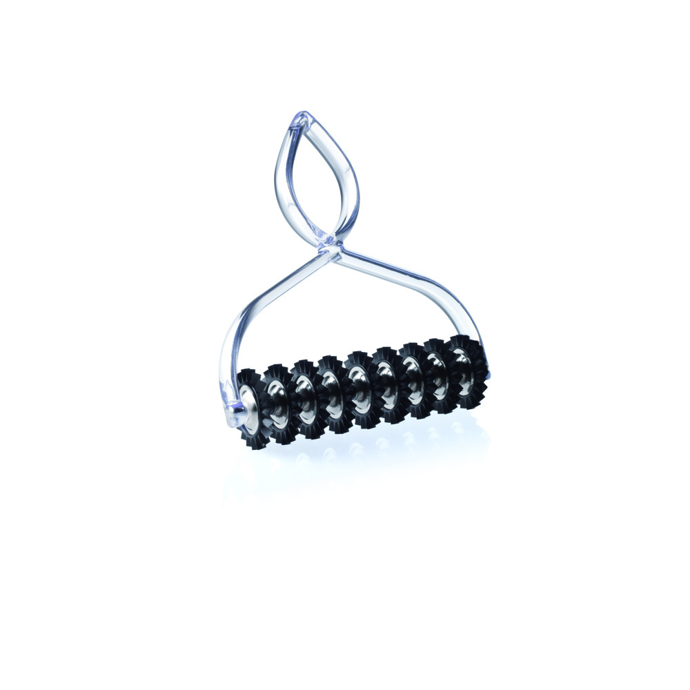 Pastabike est un coupe-pâtes comportant 9 roulettes interchangeables, avec coupe en zigzag, en matière plastique à usage alimentaire.