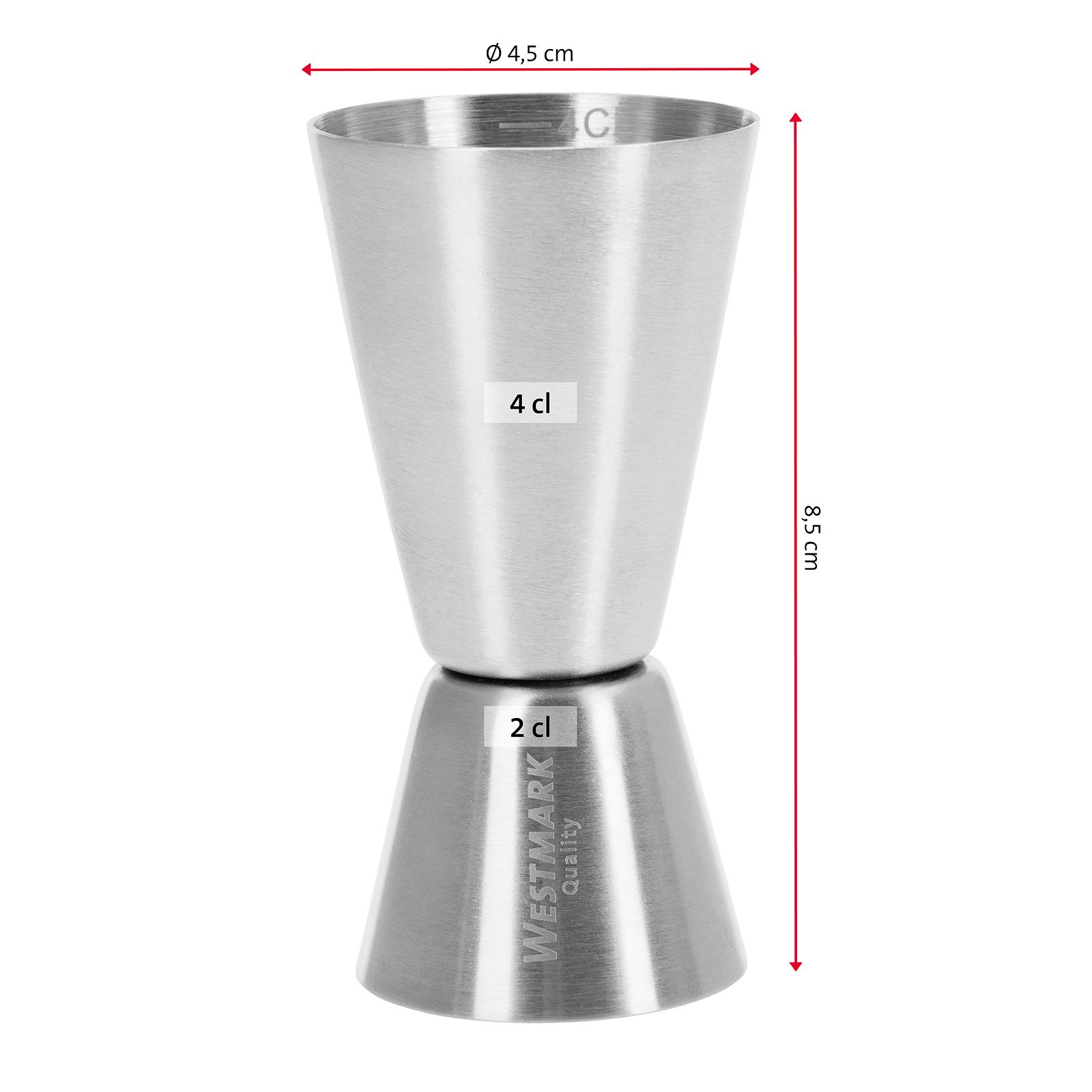 Pour la mesure parfaiteSecoué ou remué ? – Mesure en barre pour 2cl et 4 cl. Avec le petit gobelet doseur, vous pouvez facilement mesurer le sirop et les spiritueux lors du mélange des cocktails. Que ce soit pour la restauration ou le bar interne : du shaker au pilon, Westmark vous propose les accessoires nécessaires pour mélanger vous-même facilement de délicieux Cocktails.