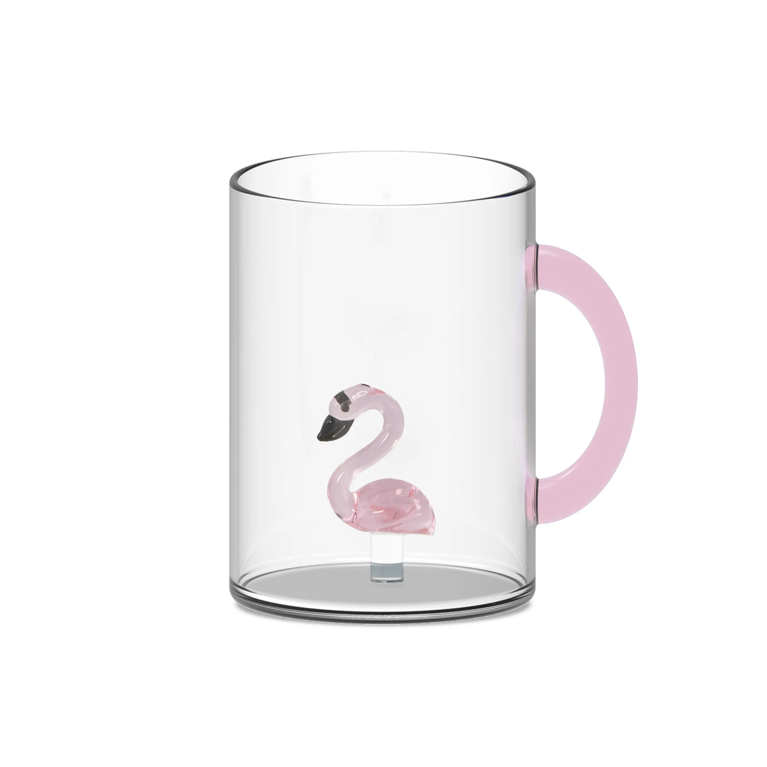 Mug en verre borosilicate avec sujet en verre coloré à l’intérieur. Chaque sujet est fabriqué à la main en verre soufflé, ce qui fait de chaque mug une pièce unique.