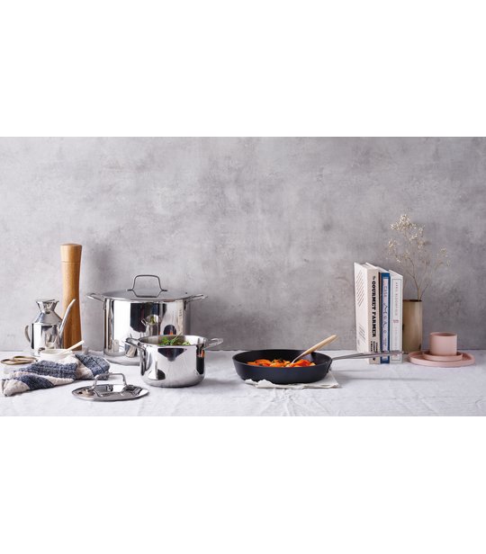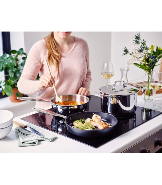 Maestro, synonyme de ‘maître’. Chaque article, y compris notre poêle antiadhésive avec un revêtement céramique 100% sans PFAS, répond aux normes les plus élevées. La gamme Maestro bénéficie des meilleures spécifications techniques pour en optimiser les fonctions au moment de l’utilisation.