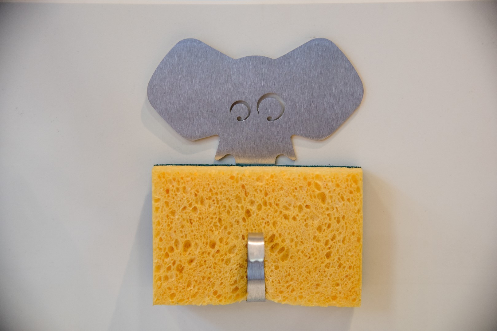 Barry est un porte-éponge en aluminium qui pourra se poser n’importe où dans la maison grâce à son adhésif puissant.