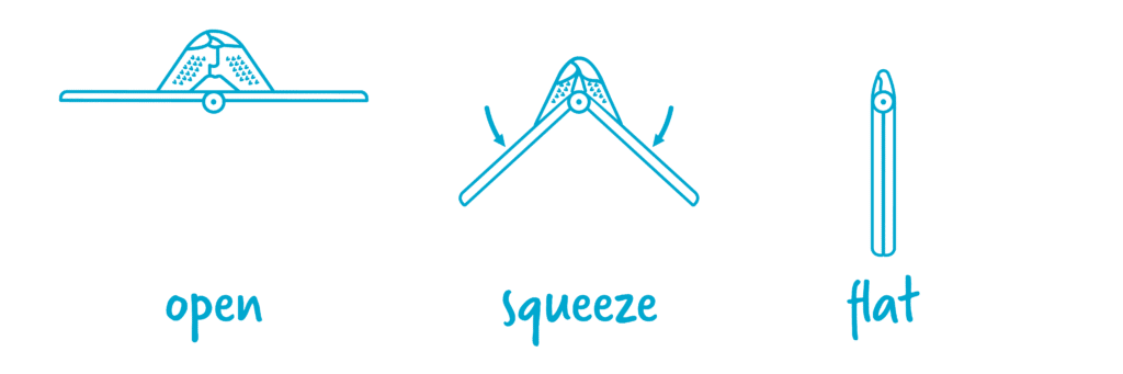Efficacité : lorsque vous pliez le Fluicer, les fruits sont pressés de l’extérieur vers l’intérieur et de l’intérieur vers l’extérieur pour une extraction maximale du jus.