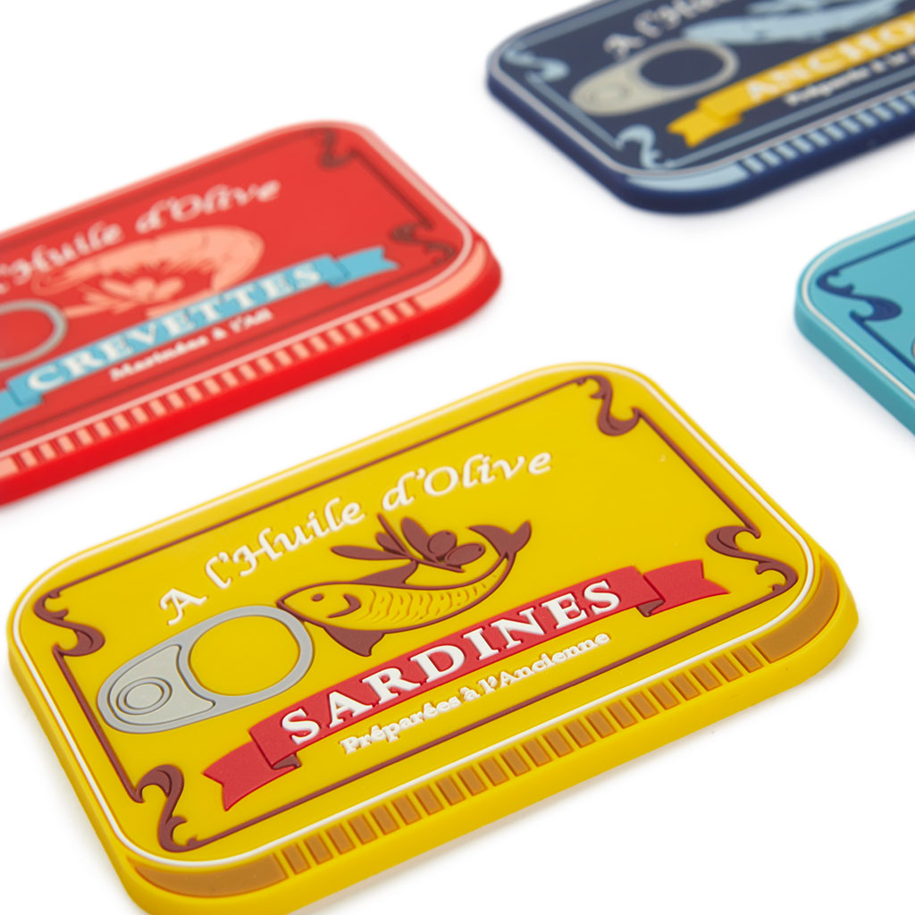 - DESIGN ORIGINAL. Design rétro et décalé qui représente 4 boîtes de conserve : sardines, calamars, anchois et crevettes.