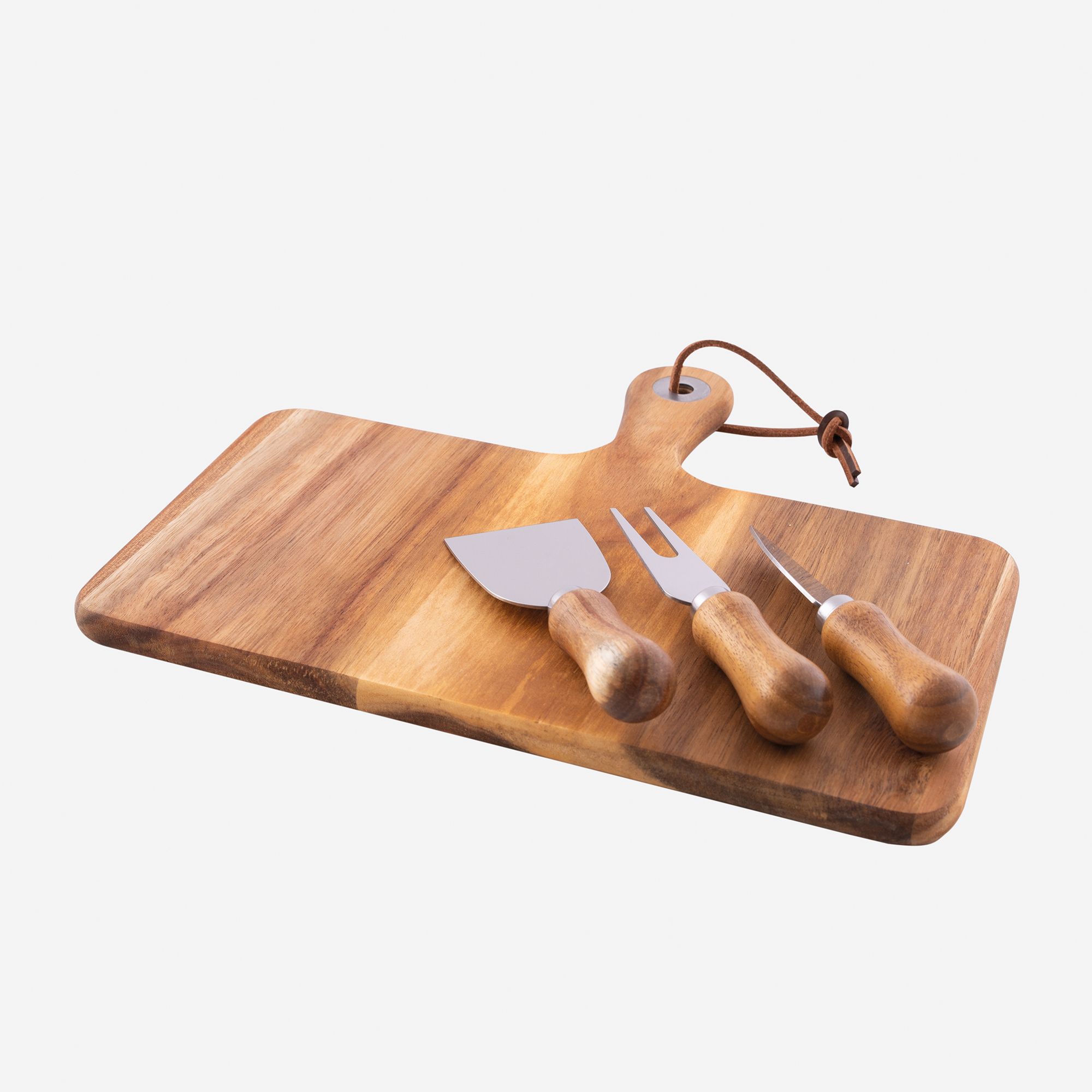 Servez les fromages les plus savoureux lors d’une agréable soirée entre amis avec cet set à fromage de Point-Virgule. En plus de 3 couteaux à fromage différents, l’ensemble comprend également une planche à servir en bois d’acacia robuste. Taille: 29x25x1.4cm – Matériau : acacia