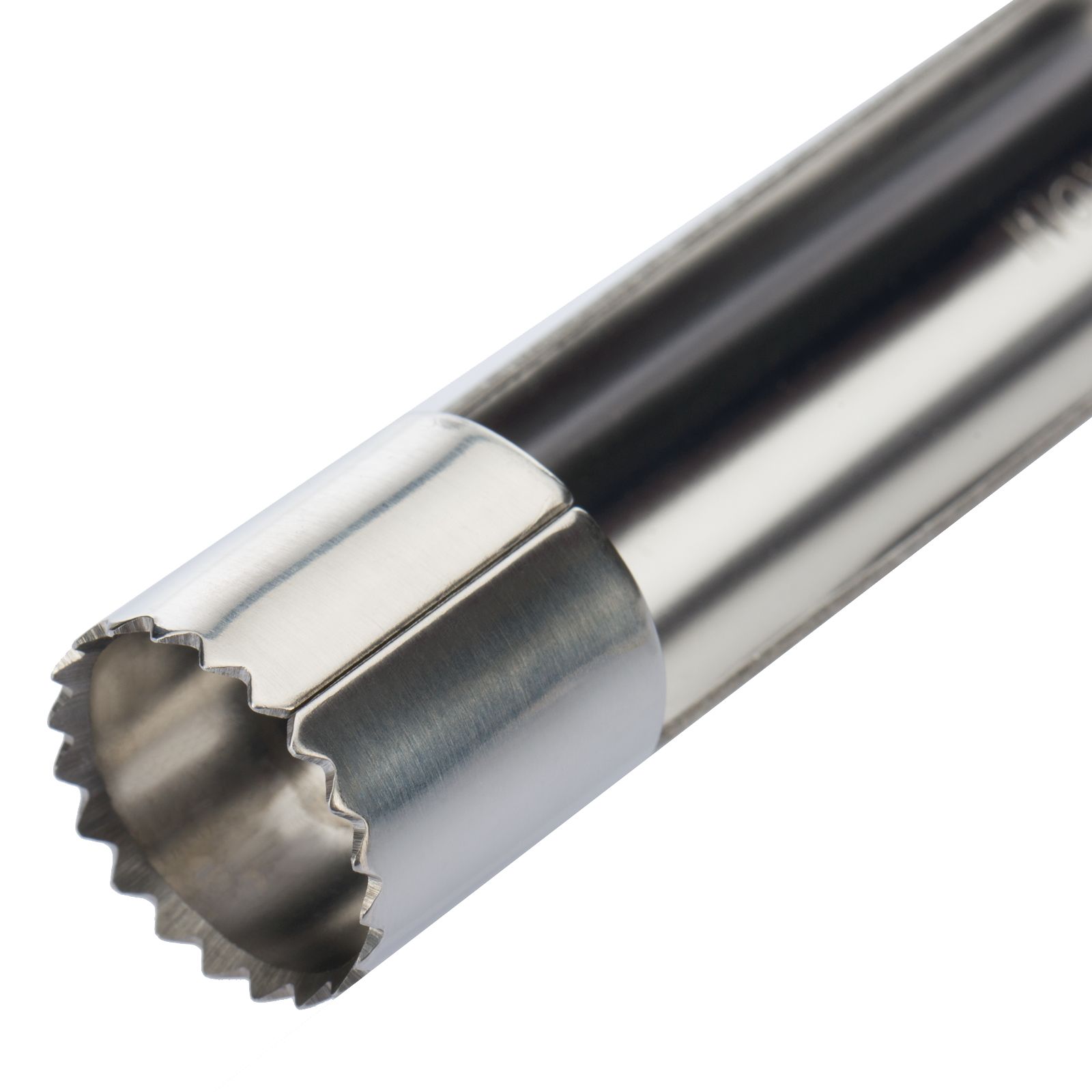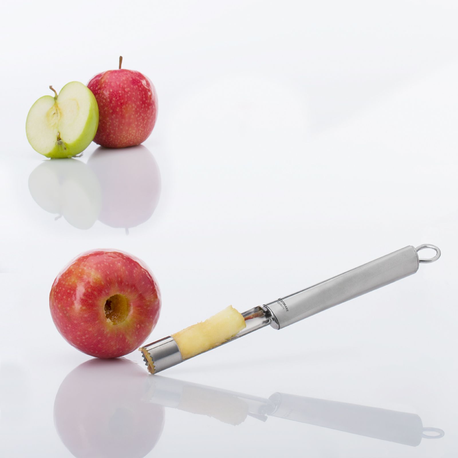 • Retrait rapide, facile et propre du trognon • anneau de coupe dentelé et tranchant • surface lisse pour un retrait facile de l’outil de coupe • avec un œillet pratique pour rangement suspendu. D. 20 mm